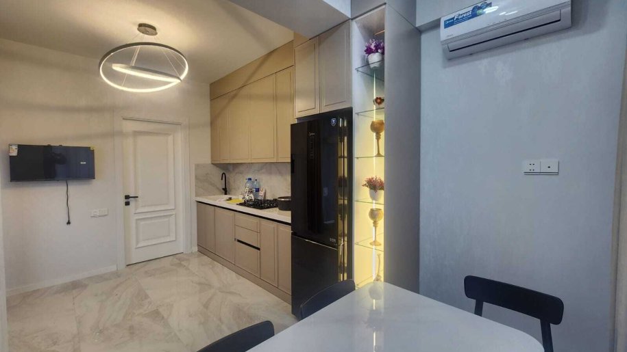 Mənzil 15 mərtəbəli YENİTİKİLİ binanın 8 -ci mərtəbəsində yerləşir. Sahəsi 130 kvm-dir. Qanunu 3 otaqlıdır. Mənzilin layihəsi idealdır.