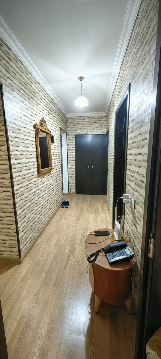Binə qəsəbəsi Əli isazadə küçəsində 5 mərtəbəli binanın 5-inci mərtəbəsi mərtəbəsi lift yoxdur lakin çox hündür bina deyil qalxmaq rahattır dam hissəsi şiferlə örtülüb. Ehtiyat üçün 1 tonluq su çəni, infrastruktur baxımından əla yerdə yerləşir. Leninqrad proyektdir 4 otaqdır bütün otaqlar temirlidir bir açıq balkonu varkı o temirsizdir. Dayanacağa 5 dəqiqə məsafədə Binə mərkəzin yaxınlığında dəmiryolu stansiyası yaxınlığı kupçalı hər bir şəraiti var qaz su işıq mövcuddur. Yaxın gələcəkdə surət qatarı bu ərazidən keçəcək qiyməti artacaq nəzərə alın ipotekaya yararlıdır maklerlər zəng vurmasın qiymətdə razılaşma mümkündür.