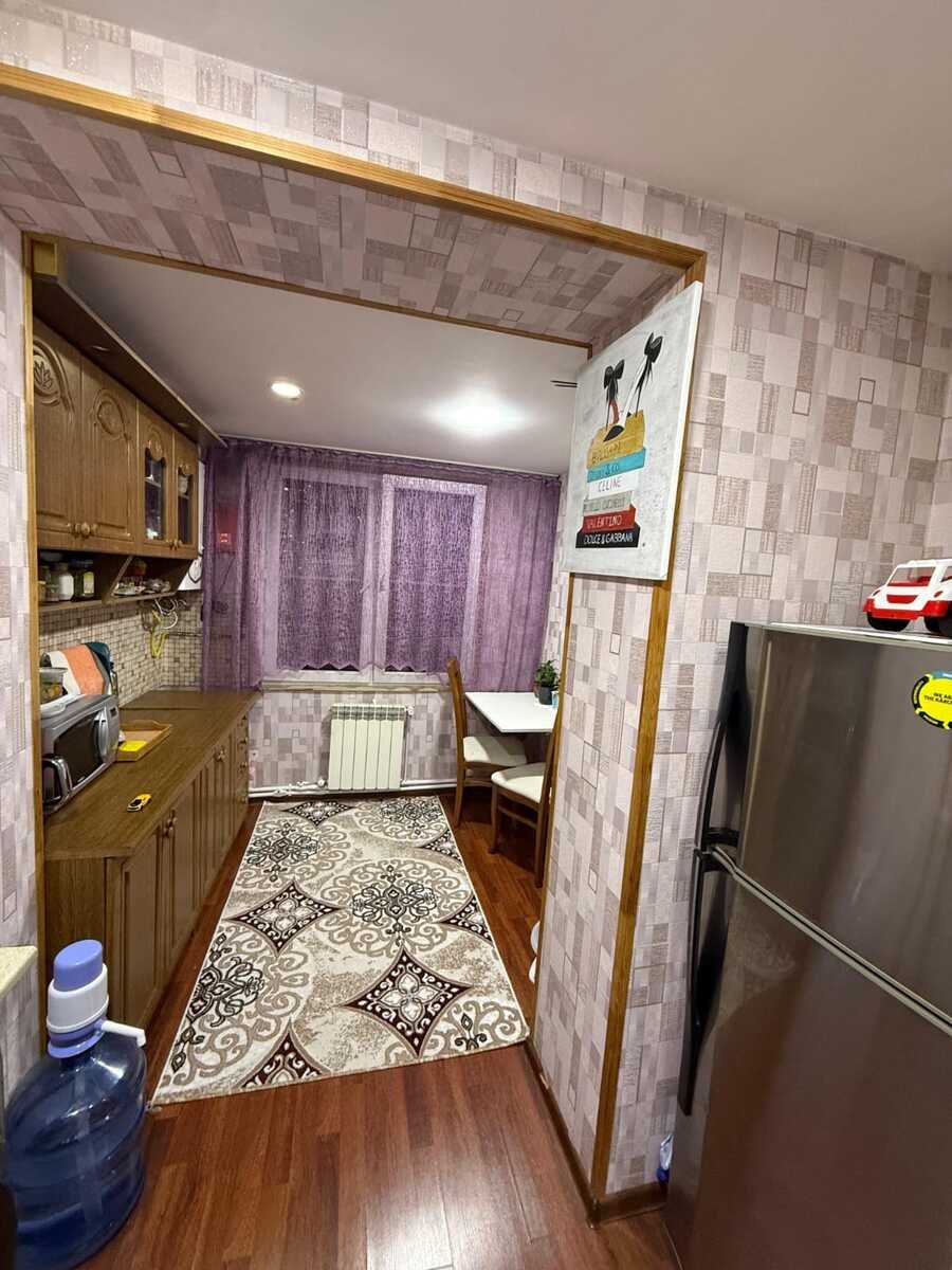 Mənzilin mətbəxti artırlıb şəkillərdə görüldüyü kimi geniş mətbəxti var.