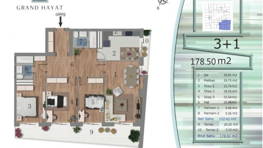 Mənzilin ümumi sahəsi 179 kv.m