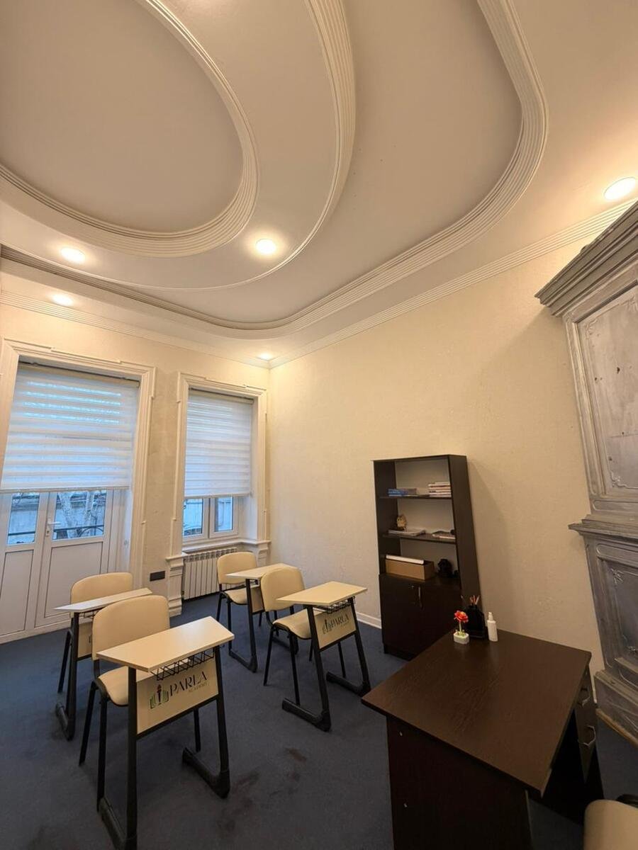 Nizami m st nin yaxinliginda kohne arxitexturnu 5 mertebeli binanin 1 ci mertebesinde temirli esyali 170 kv 5 otaqli ofis icariye verilir.Ofisin qazi suyu isigi istilik sistemi kondisonerleri movcutdur,ofis cox elverisli erazide yerlesir