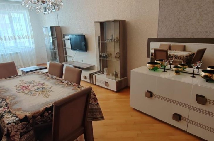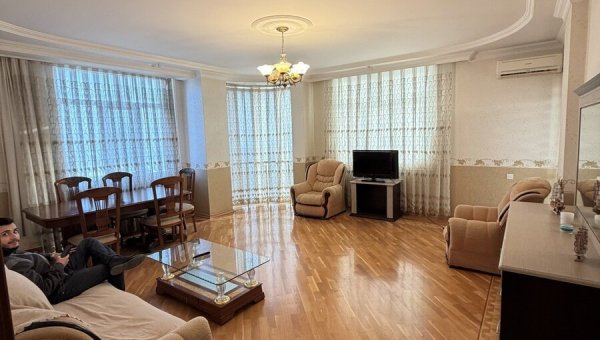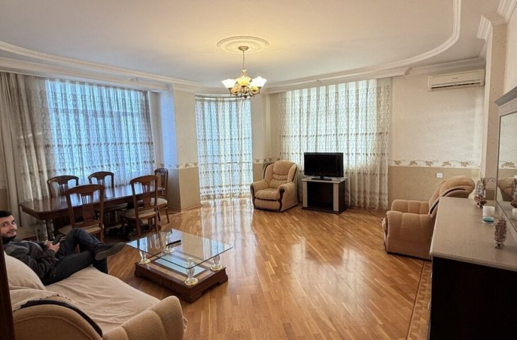 Nərimanov rayonuHeydər Əliyev Mərkəzinə baxan, tam əşyalı və elektronikalı mənzil kirayə verilir.3 otaq, 140 kv.m2 sanitar qovşağı (hamam/tualet)Kladovka mövcuddurMənzilin həyətdə şəxsi parkovka yeri var (aylıq 15 AZN)Binanın kommunal ödənişi: 45 AZNMənzil rahat və geni ...