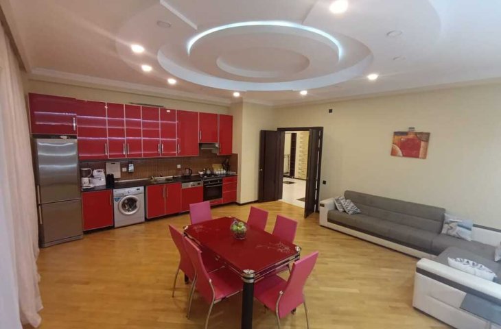 Nərimanov metrosunun yanında 3 otaqlı mənzil icarəyə verilir. Yeni tikili, sahəsi 130 kv.m. Böyük işıqlı otaqlar. Əla təmirli, hər şəraiti var,yumşaq qonaq otağı mebeli, yataq dəsti, mətbəx mebeli, paltar yuyan maşın, soyuducu, split-kondisioner, TV plazma, KATV, surətli ...